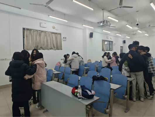 活动设计独具匠心,各班级结合专业特色开展沉浸式心理体验。在“你是我的眼”信任盲行挑战中,蒙眼者与引导者通过肢体语言编织默契网络,跨越障碍物的每一步都见证着信任的建立与传递;“互助身心放松操”则以集体按摩为载体,配合森林疗愈音乐与呼吸引导,让紧绷的肩颈在温暖触碰中舒展,焦虑情绪随深呼吸悄然消散。这些精心设计的互动场景,不仅营造出其乐融融的班级氛围,更让心理教育突破说教模式,转化为可触摸、可感知的生命体验。