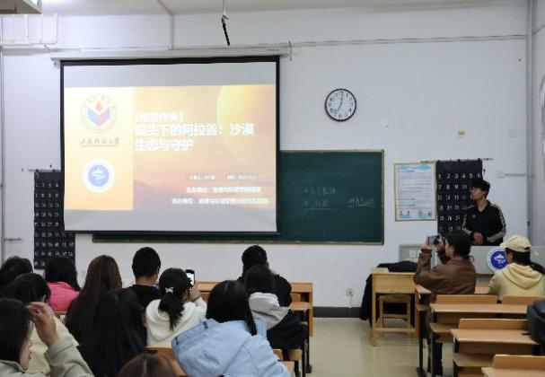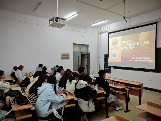 除专业知识解读外,卢广毅更聚焦社会实践中的精神传承,分享了团队在极端沙漠环境中攻坚克难的亲身经历:从遭遇沙尘天气时的应急处置,到野外调研中物资短缺的相互接济,再到数据采集遇阻时的集体攻关,一个个鲜活故事将“团队协作”“坚韧探索”等抽象精神具象化。整场分享会期间,同学们专注聆听、踊跃互动,现场氛围热烈。这场分享已超越单纯的知识传递范畴,成为一堂生动的实践教育课,让同学们在收获学识的同时,更将不畏艰难、协同共进的探索精神内化于心、外化于行。