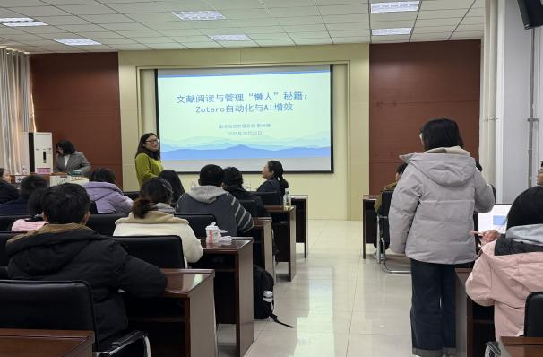 活动伊始,范媛媛强调,在学术起步阶段,掌握高效的文献管理方法对地环学子的科研能力培养至关重要。她表示,本次讲座不仅是一场实用技能培训,更是一次科研思维的启迪。希望同学们能将所学知识运用到今后的学术实践中,真正做到“工欲善其事,必先利其器”。