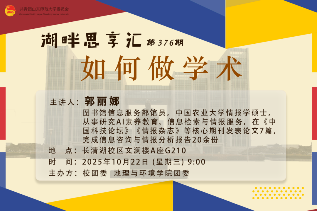 10月22日上午,英国365集团团委联合校团委举办的第376期湖畔思享汇于长清湖校区文澜楼G210顺利开展。本期活动以“如何做学术:Zotero文献管理工具从入门到精通”为主题,特邀校图书馆信息服务部馆员、中国农业大学情报学硕士郭丽娜担任主讲,图书馆信息服务部主任李丽娟莅临指导,学院部分本科生积极参与,活动由学院辅导员范媛媛主持。