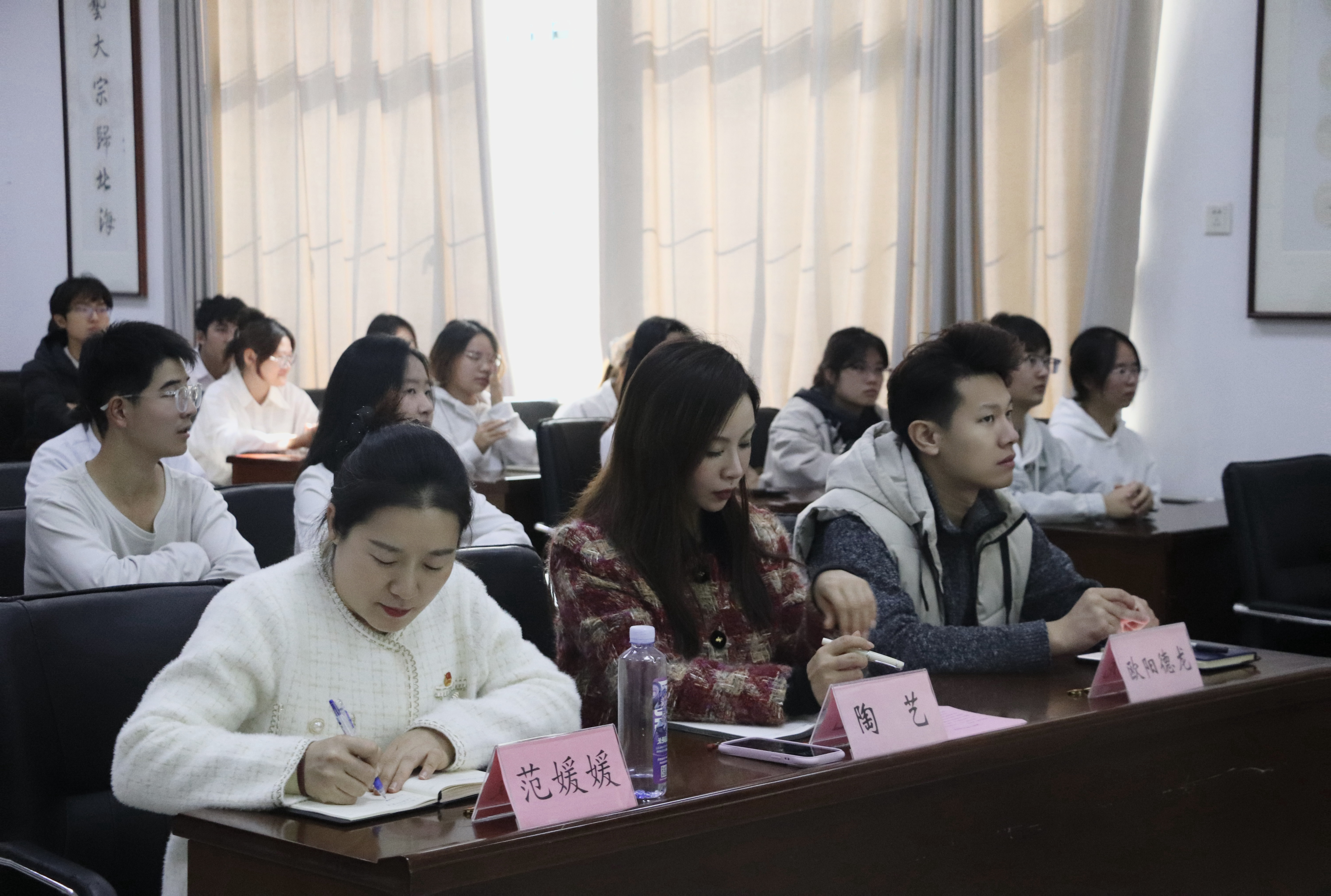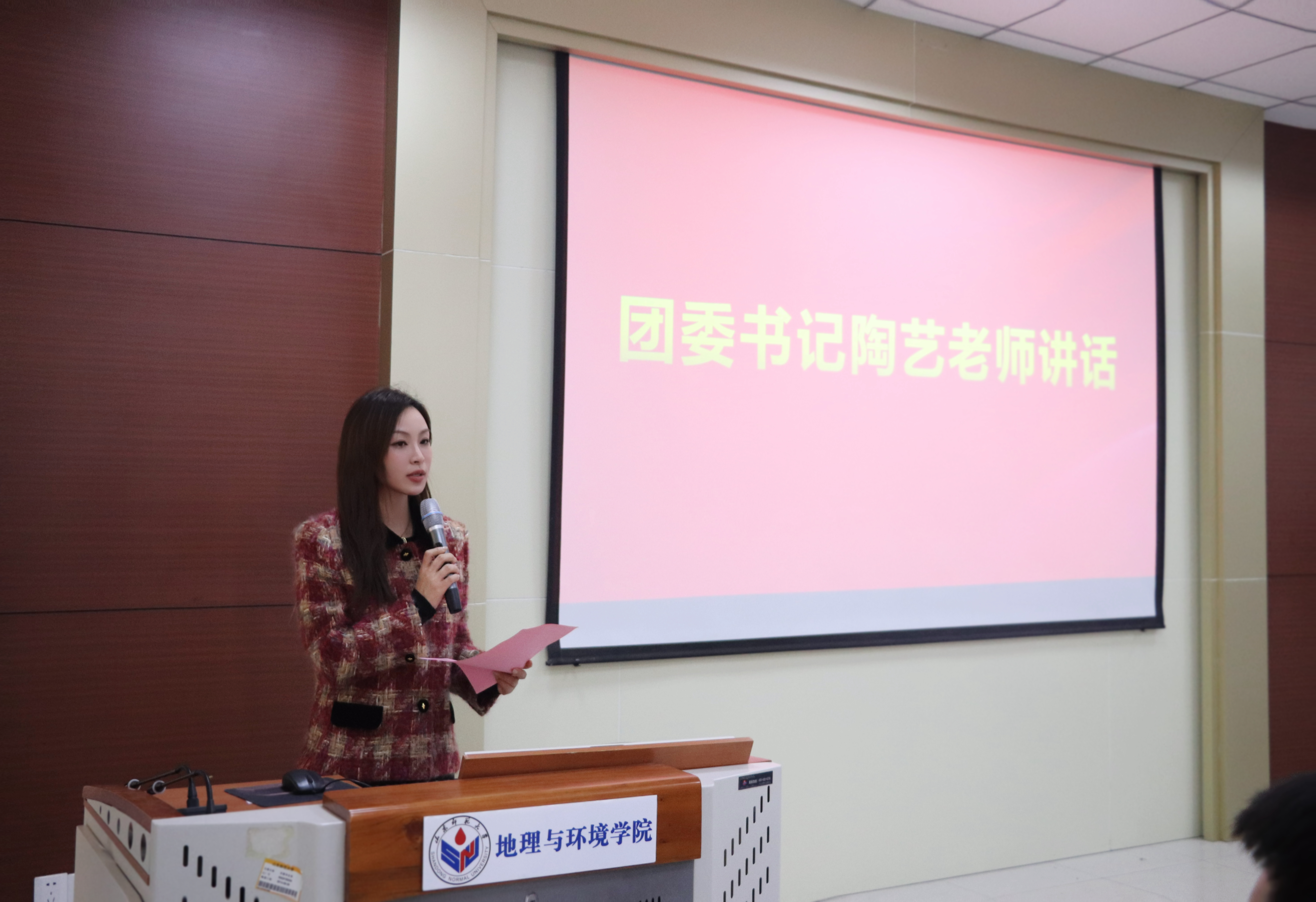 学院团委书记陶艺代表学院团委向新团员致以热烈祝贺,深入阐释了加入共青团的深刻意义,并通过三个"成长关键词"寄予殷切期望:一是"校准坐标",要锚定时代方位,做将个人理想融入国家发展大局的追梦者;二是"锤炼本领",要兼顾理论学习与实践锻炼,做深耕书本且躬身实干的实干家;三是"当好旗帜",要以言行践行初心,做知行合一的先行者。她强调,学院团委是团员青年最坚实的后盾,将持续为青年学子搭建成长平台、对接优质资源、赋能全面发展,以务实举措排忧解难,以真诚关怀保驾护航,成为大家求学路上的依靠与成长途中的港湾。