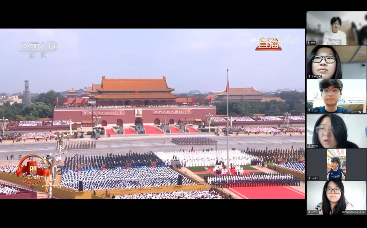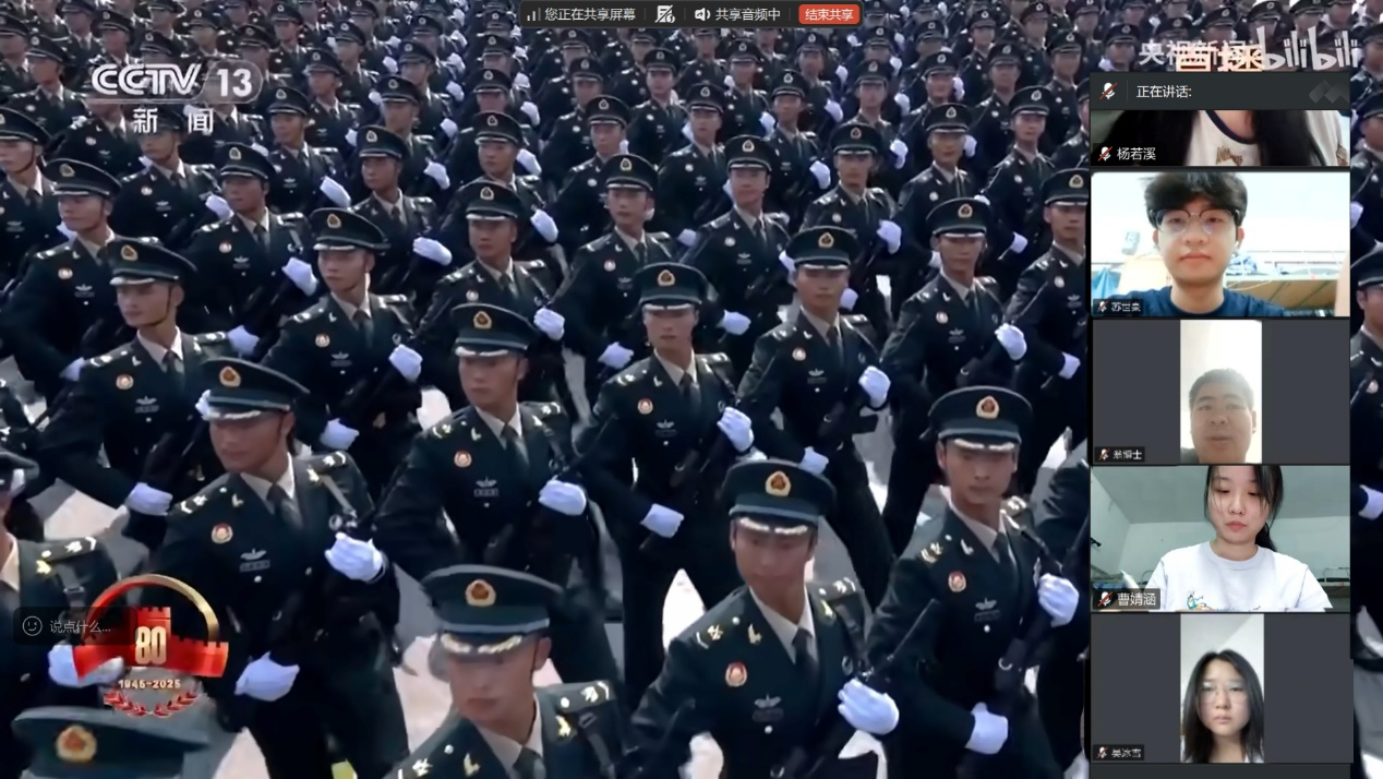 9月4日晚上,为提高青年爱国担当意识,英国365集团团委“地心力”团校依托腾讯会议线上平台举办“悟阅兵担当,担时代使命做有为青年”观看阅兵仪式活动。为纪念中国人民抗日战争暨世界反法西斯战争胜利80周年,我国在北京天安门广场隆重举行了阅兵仪式。这一纪念日不仅是对无数先烈牺牲奉献的深切缅怀,更是对历史真相的坚定守护、对和平正义的庄严捍卫,为传承爱国主义精神、激励后人奋勇前行提供了重要精神指引,具有不可替代的历史价值与现实意义。