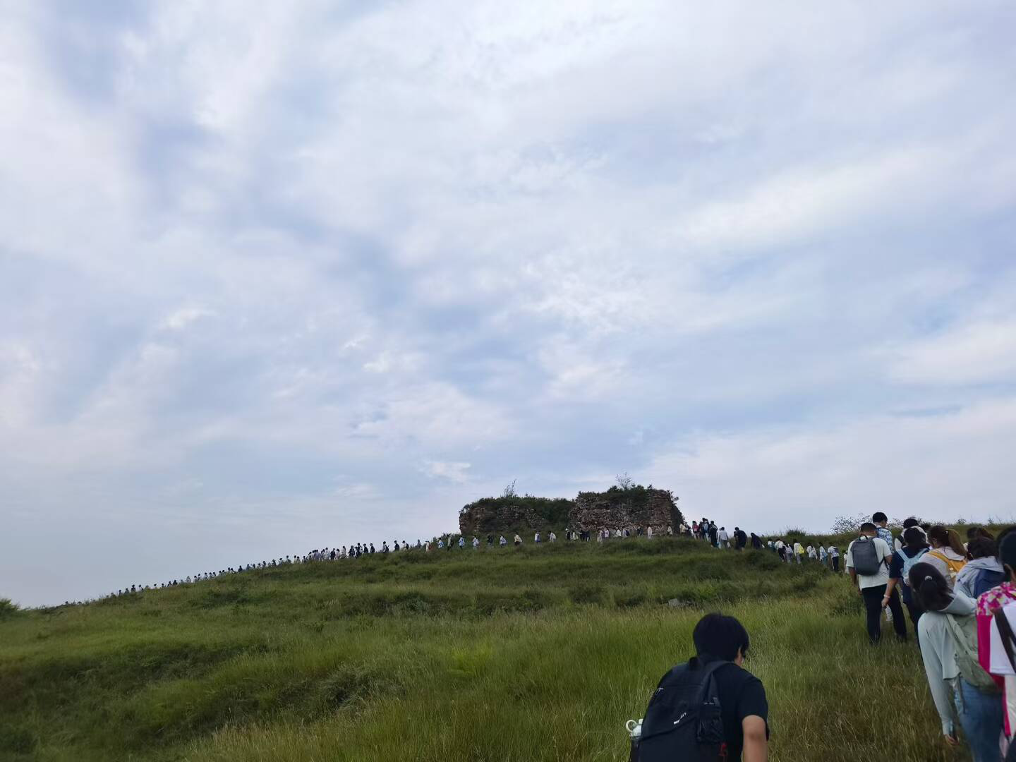 第四天,师生们登临鸡冠山开展实地考察,重点掌握了长龙山组的地层特征及沉积环境。通过断层观察与判别,同学们巩固了构造地质学知识,并识别了层理和波痕及典型矿物与岩石,如海绿石和石英砂岩。此外,大家还结合各位老师的讲解对该地区地貌格局与演化过程开展了讨论。