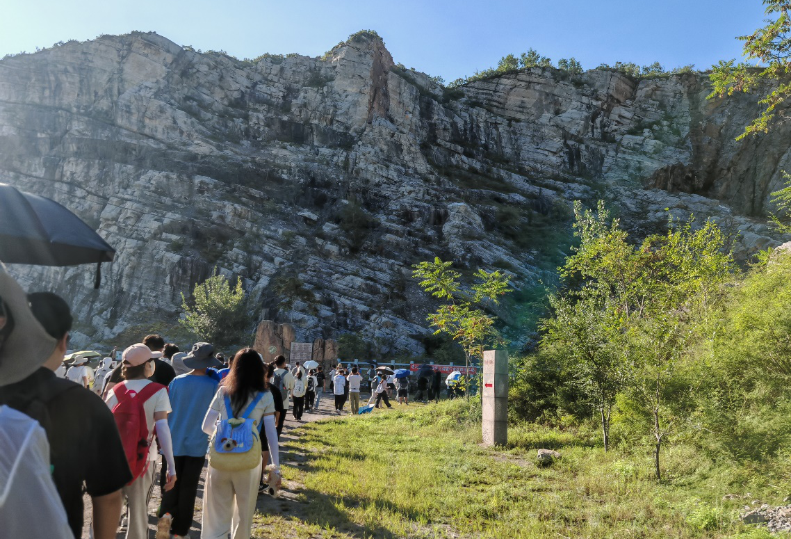 实习期间,同学们以饱满的热情投入野外实践。在多位指导教师的带领下,各小组走进柳江盆地的多个典型地质观测点,开展了系统而细致的考察。首日行程为张岩子-潮水峪路线。在张岩子剖面,学生们认真观察了元古代地层的特征,详细记录了岩性和层理的变化;随后前往潮水峪,对徐庄组、张夏组、崮山组、长山组和凤山组的岩性特征及沉积环境进行了考察与讨论。