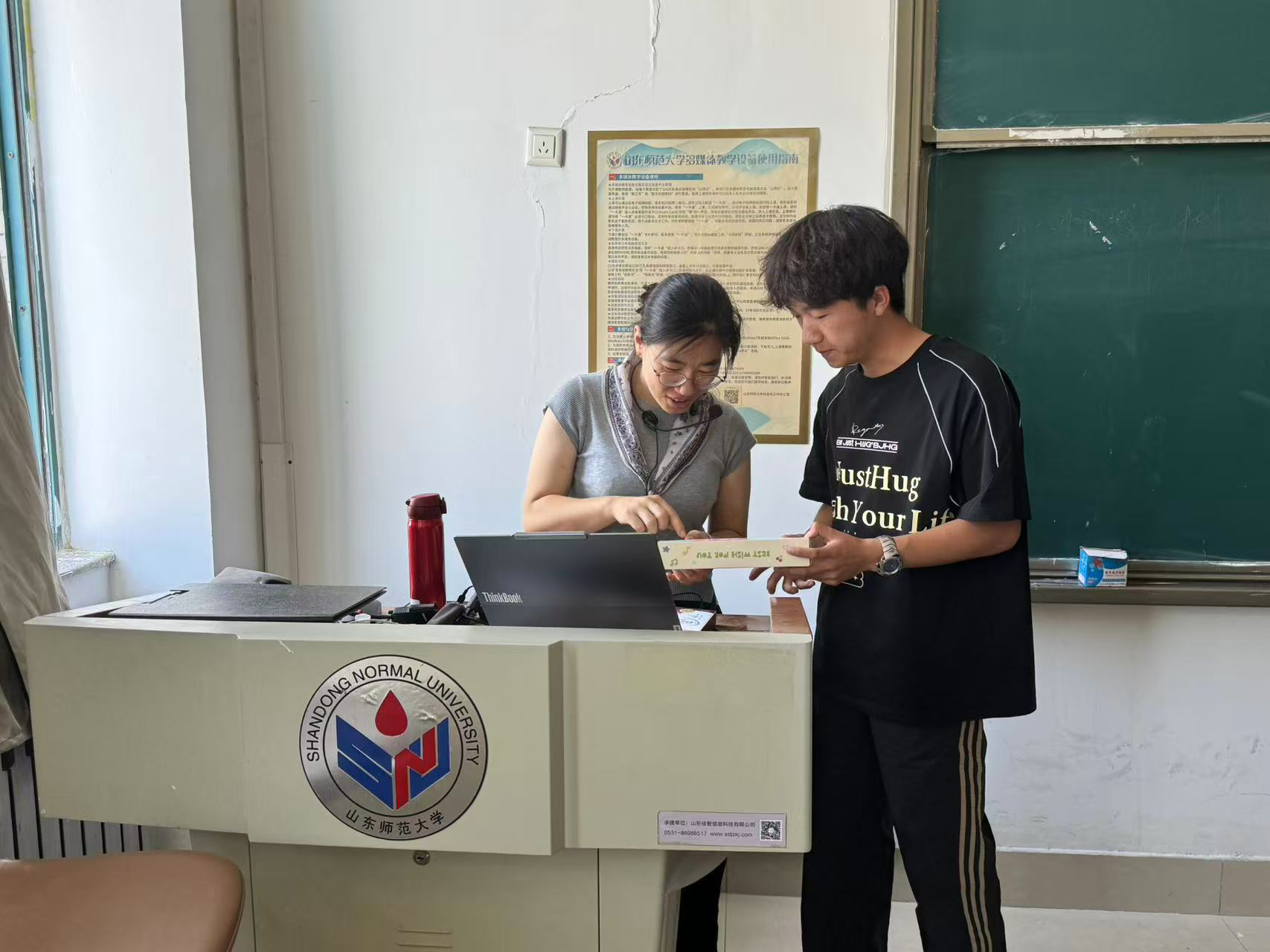 活动现场,教师们领取同学们精心筹备的盲盒礼物。打开盲盒的瞬间,欣慰的笑容绽放在每位教师脸上——一份份惊喜不仅有效舒缓了教师日常教学的压力,更让课堂氛围焕发出轻松愉悦的活力。学生们也主动参与盲盒抽取互动,围绕在教师身边亲切交流,现场欢声笑语不断。暖暖的师情与生谊在轻松融洽的氛围中悄然传递,师生距离进一步拉近,关系愈发和谐紧密。