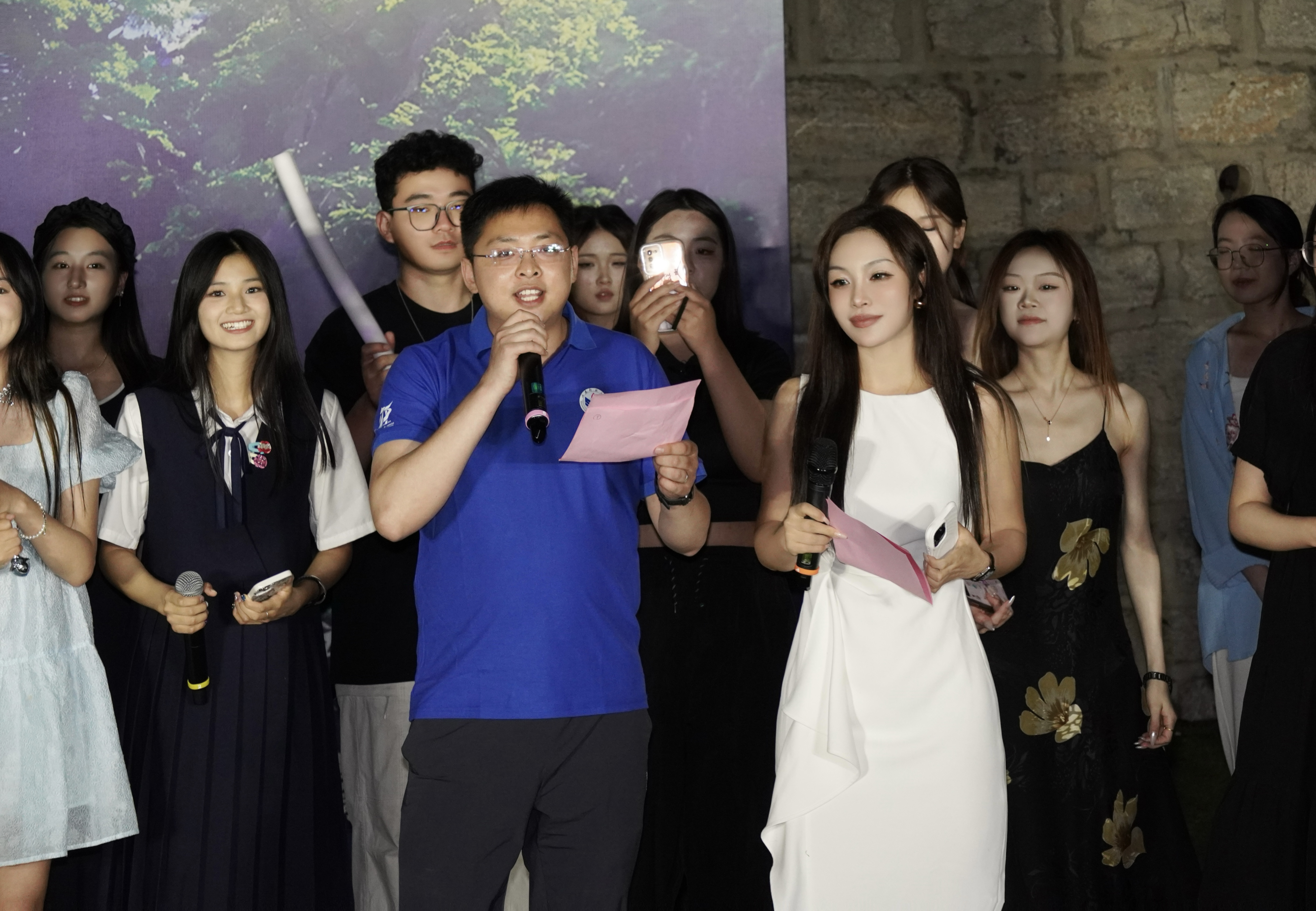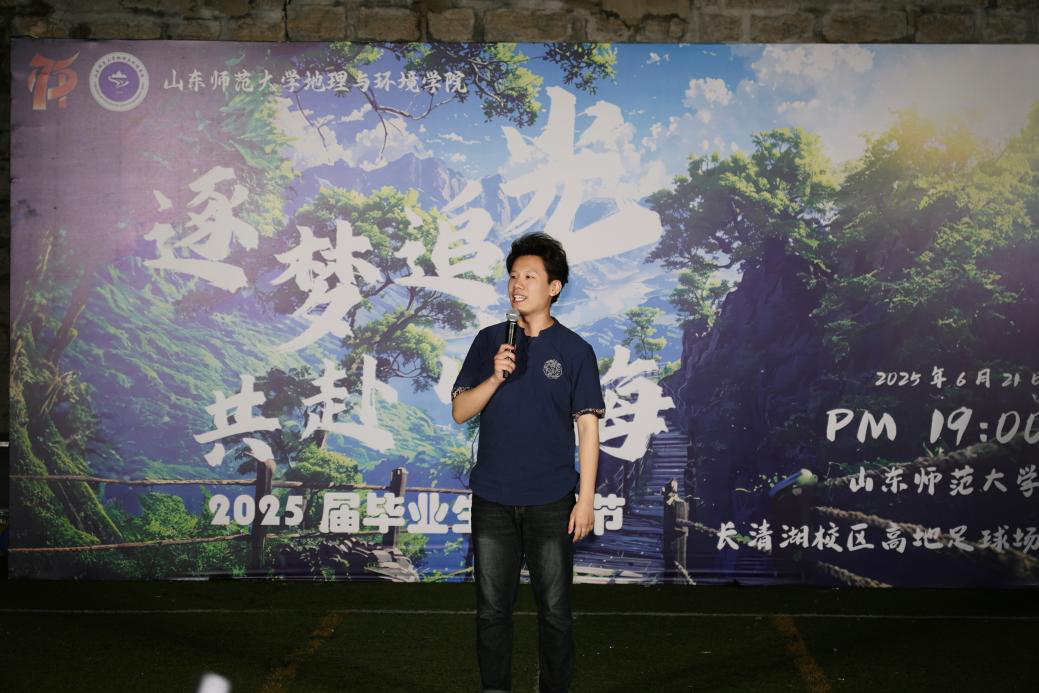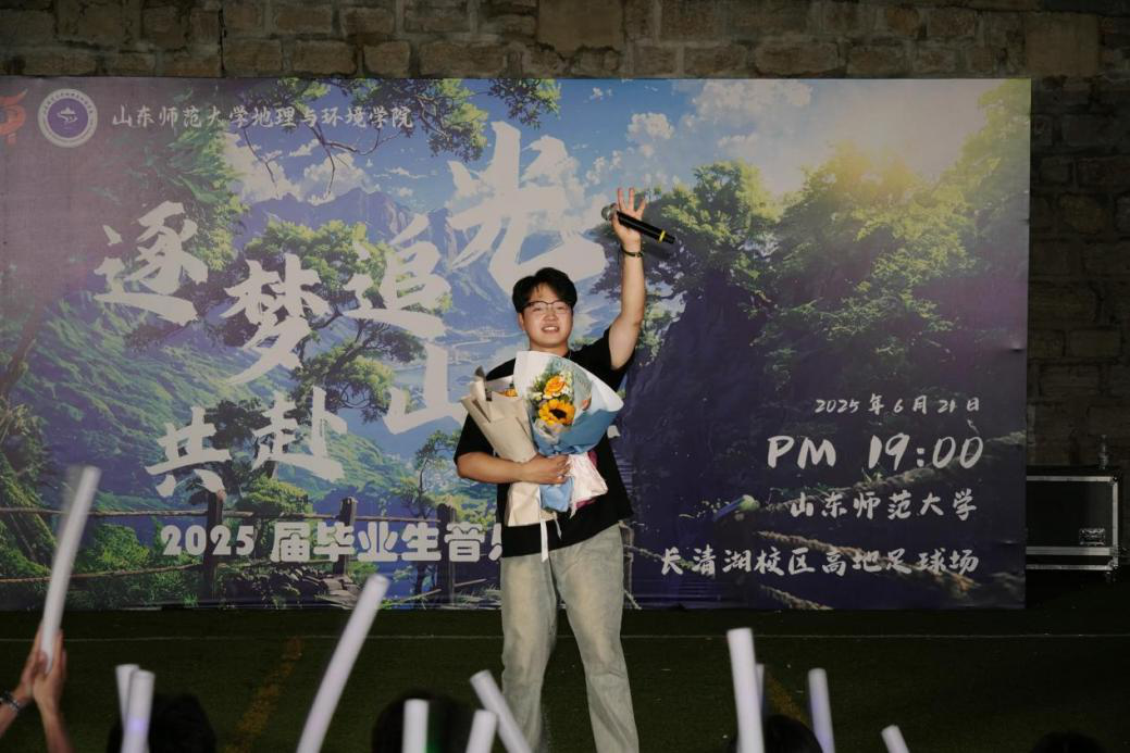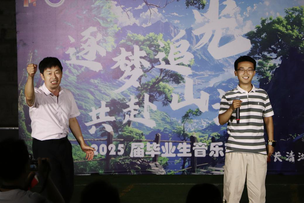 特别致敬老师们的惊喜献艺——从王成新院长深情献唱《梦驼铃》,沧桑声线里流淌着对远方与理想的眷恋;欧阳德龙老师与毕业生共唱《祝你一路顺风》,道尽师长绵长的牵挂;范媛媛老师惊喜登场,《羞答答的玫瑰静悄悄的开》与《God is a girl》的热烈碰撞,中英文旋律交织成诗。三尺讲台外的他们用音乐传递热爱,师生同频共舞,诉说对青春的共鸣。