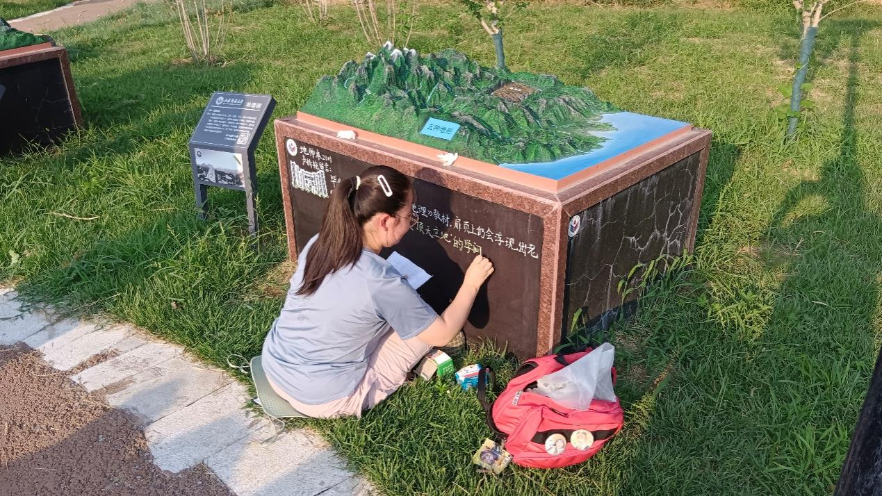 “毕业生祝福留言活动”特别邀请地环学院的优秀毕业生、素有“地理老师中的灵魂画手”之称的袁晓老师,进行板书指导与示范,学院院长王成新教授和地理科学系副主任朱承熙副教授也亲临现场。前期筛选出来的 30 份饱含深情的心里话被精心书写在地理园黑板上,为毕业生留下一段独特的母校祝福。