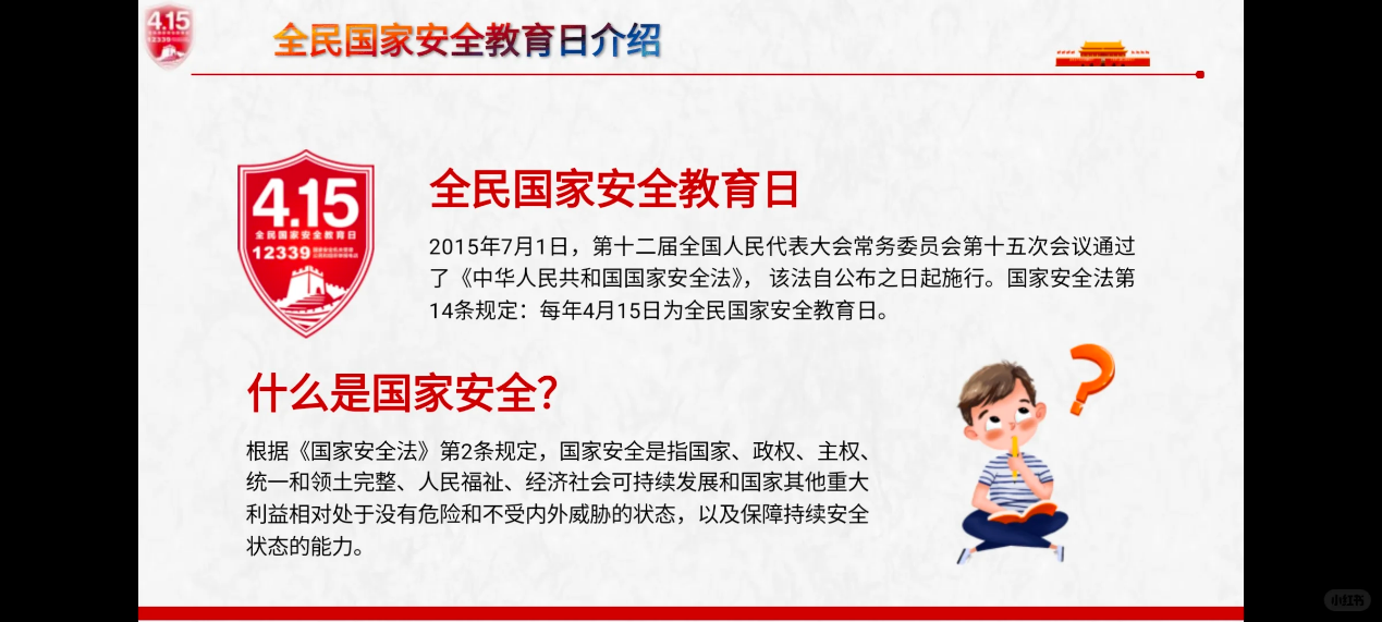 本次国家安全教育日主题团日活动带领同学们学习了国家安全的重要性,普及了如何将维护国家安全融入到日常生活中的相关知识,推动了国家安全理念在青年心中落地生根,极大地激发了同学们的爱国情怀。学院团委将继续以总体国家安全观为指引,强化同学们的国家安全意识,力图把维护国家安全的责任扛在肩上、融入行动,让“国家安全重于泰山”的理念成为校园最鲜明的底色。