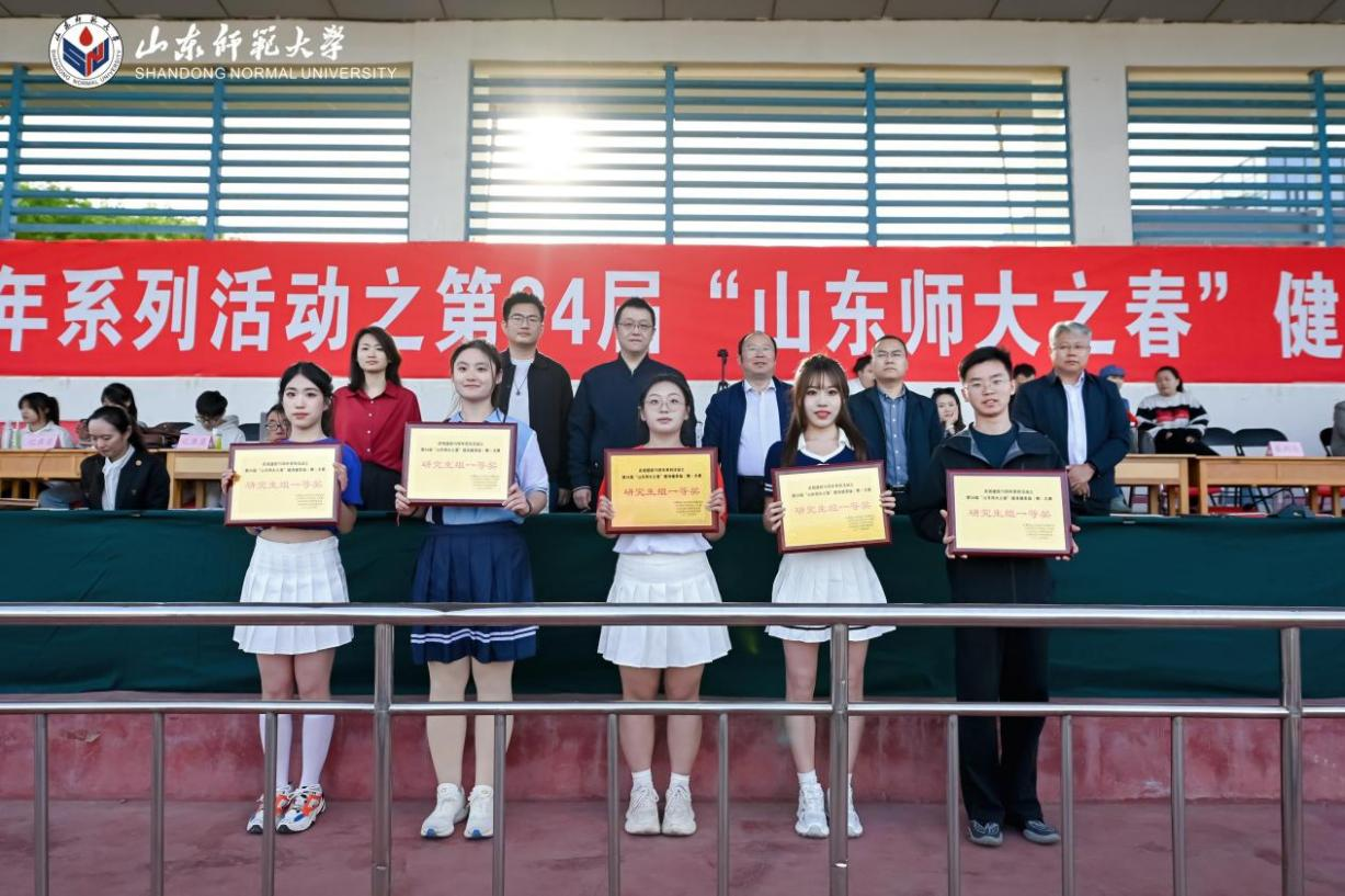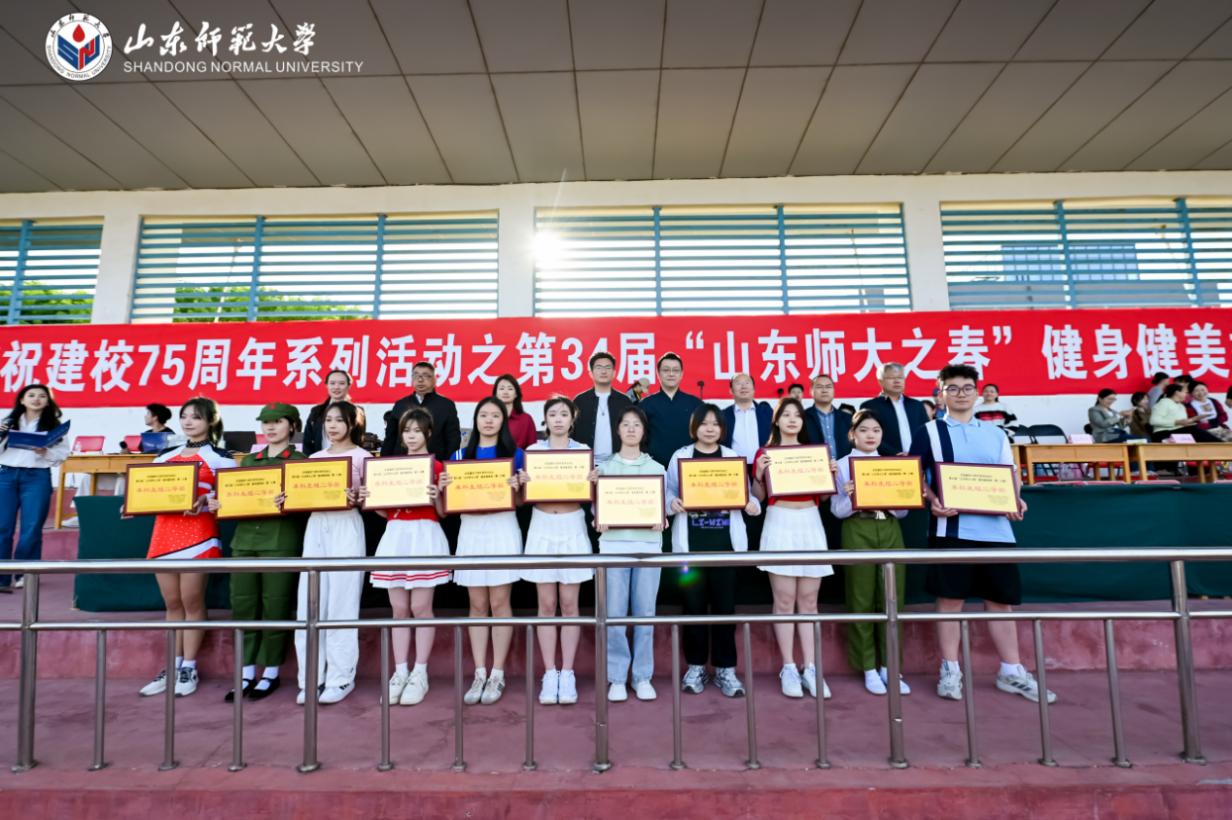 4月24日,英国365公司风雨田径场人声鼎沸,热闹非凡。由校团委和体育学院团委主办的2025年山东师大之春健身健美操(舞)大赛暨庆祝建校75周年系列活动在此圆满落幕。来自全校的21个学院代表队齐聚一堂,经过激烈角逐,我院凭借卓越表现荣获本科生组二等奖与研究生组一等奖!