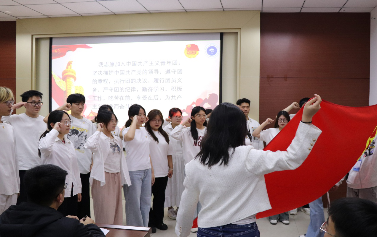 仪式在庄严的国歌声中拉开帷幕。学院团委委员刘相良宣读新发展团员名单,随后,学院团委老师为新团员逐一佩戴团徽并颁发团员证。优秀团员代表孙嘉铄带领全体新团员庄严宣誓,铿锵誓言响彻会场,彰显出青年团员的责任与担当。