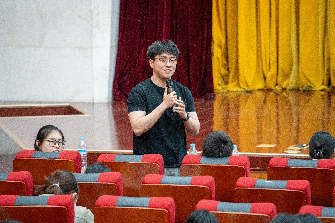 最后,刘鲁毅通过自身的经历,生动讲述这段经历如何在学业精进、考研备战等关键节点产生深远影响。他以切身体会印证大创竞赛在锤炼综合能力、拓宽发展路径方面的积极意义,鼓励在场师弟师妹把握机遇踊跃参与。