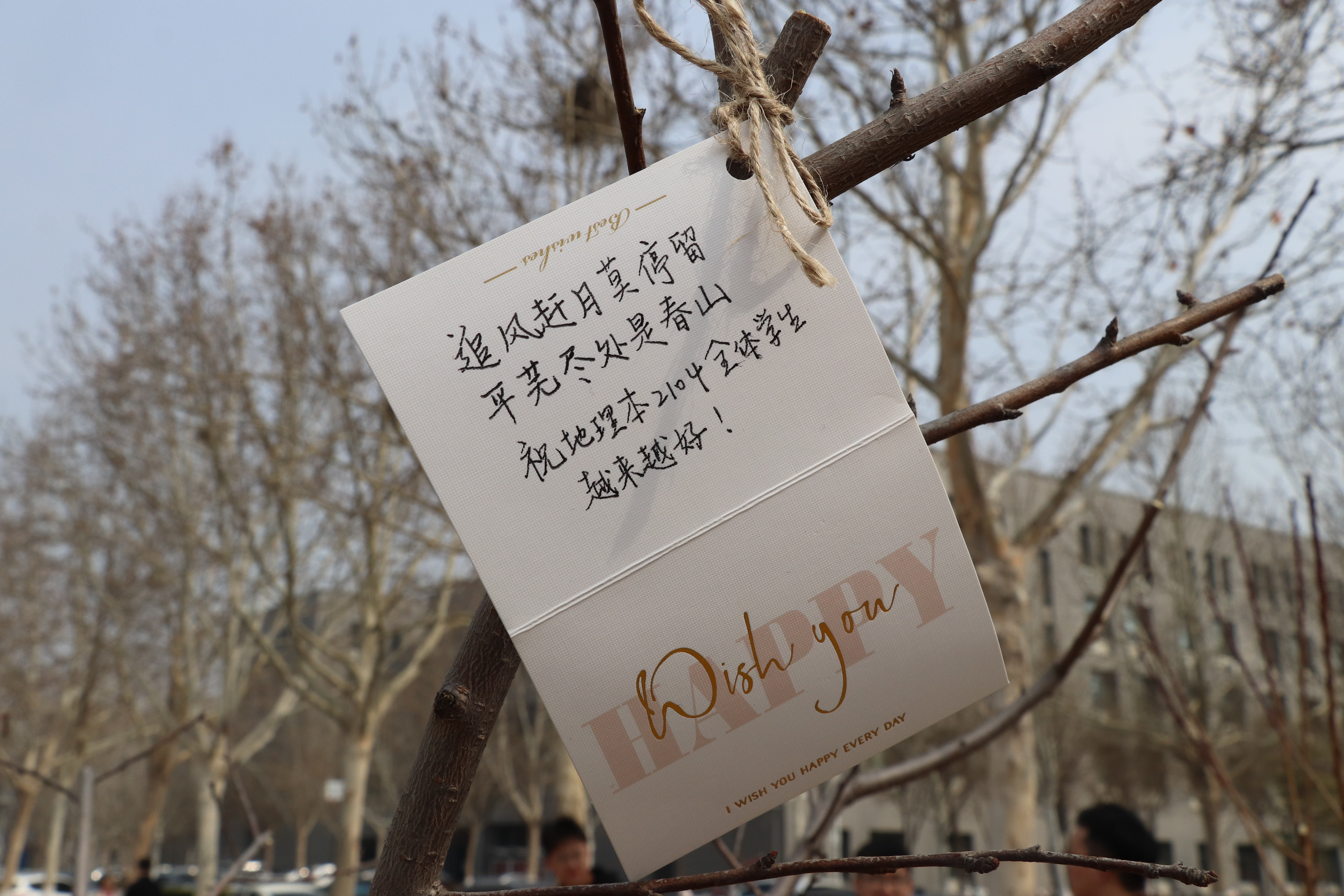在活动开始前,王成新向师生们介绍了地理园中校友林的情况,他指出“地理园既是学校、学院的重要教育教学基地,也是长清湖校区地标性景观,在此与毕业生共同植下桃李树不仅仅是美化校园环境,同时也是向师生传播生态文明思想和绿色发展理念的重要实践教育。希望各位应届毕业生带着对母校的祝福和希冀,成熟自信地步入社会、奉献社会,将自己的个人理想融入中国式现代化建设的伟大梦想之中,今日你为母校骄傲,未来母校为你们而自豪”。在随后的植树过程中,师生三五成群、分工协作,挥锹铲土、挖坑、植树、盖土、浇水、挂祝福卡,现场气氛热烈,配合默契。经过一个多小时的劳动,地理园东北侧增添了一抹抹生动绿意。