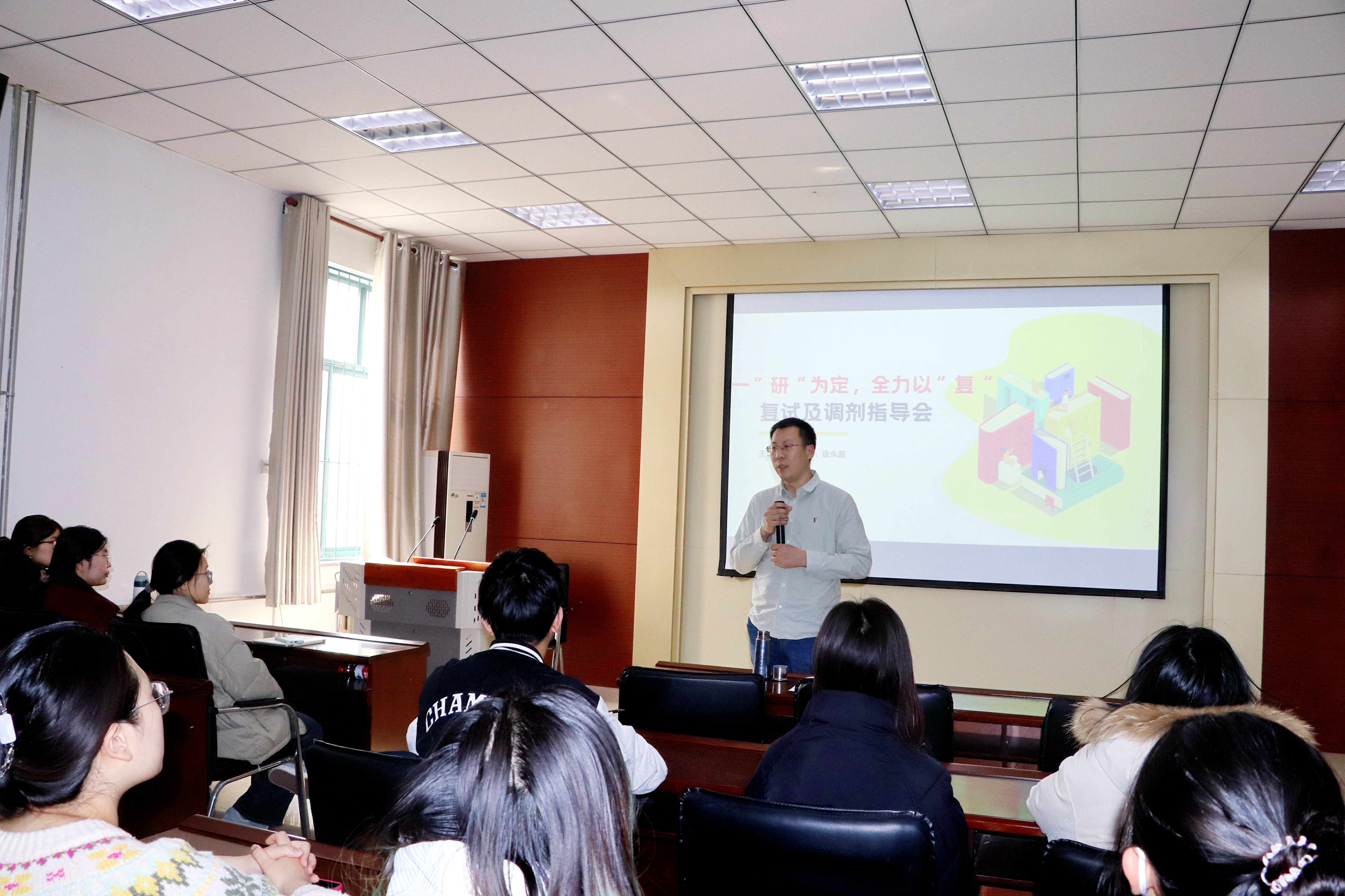 本次指导会,主要分为“复试介绍”“调剂事项”“答疑解惑”三个部分。老师们结合多年研究生招考工作经验,从“复试资格的确定”“复试资格的审核”“复试的方式与内容”三个方面完整介绍了考研复试材料准备和基本流程。针对复试笔试、面试(专业课问题、综合素质、外语考查、政治考查)提供了相关备考建议及注意事项,并对导师选择、简历制作、自我介绍、问题回答、英语口语、调剂信息等同学们关心的复试与调剂问题进行一对一的解答,为不同专业的考生提供针对性的备考方法,鼓励同学们在复试中遇到任何问题都要充满自信,从容应对。