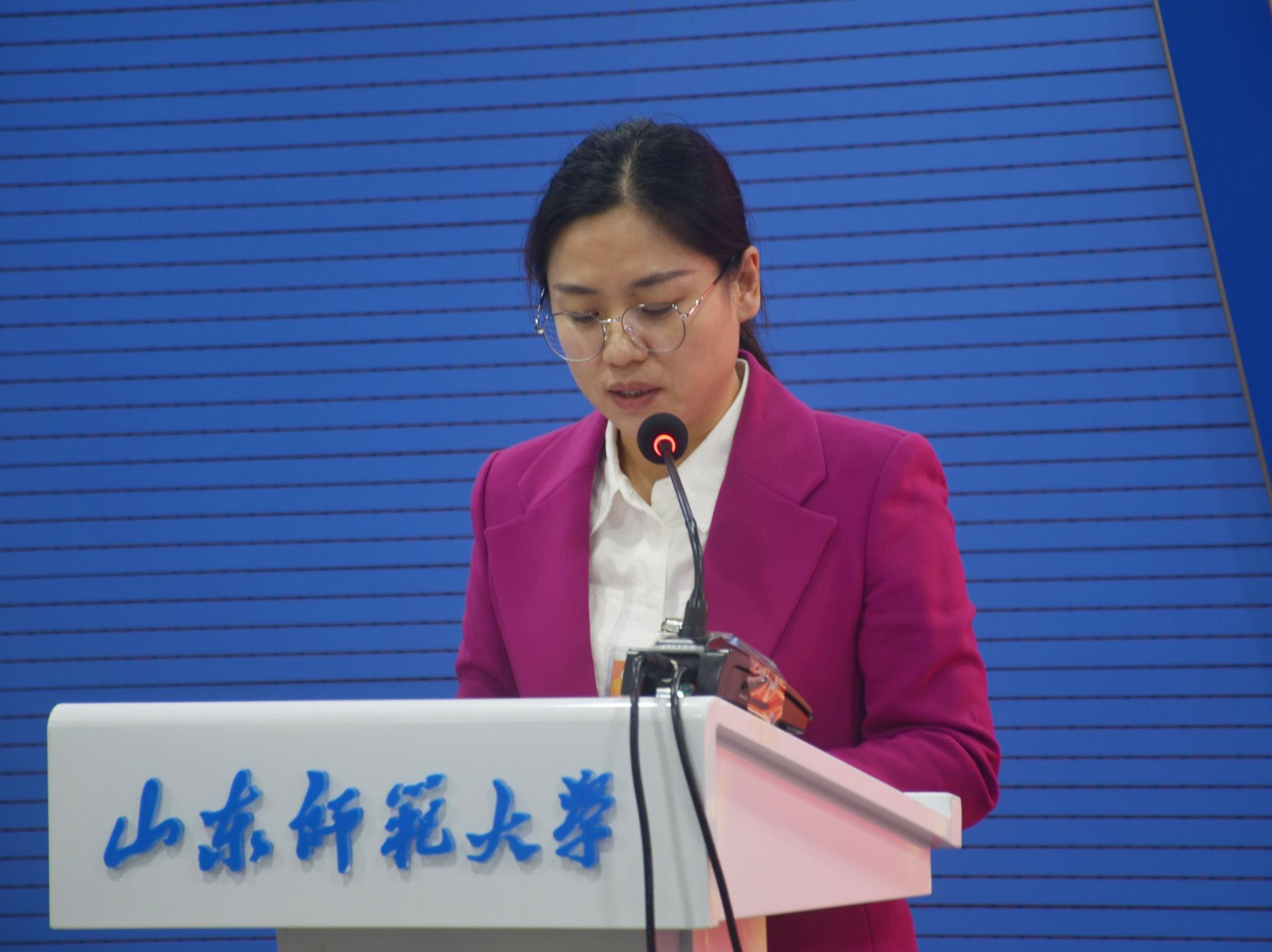 李妮娜代表学院团委做了工作报告,她指明党旗所指即为团旗所向,学院团委始终坚持深入学习贯彻落实党的十九大、十九届历次全会精神以及团的十八大会议精神,在新思想理论知识指导下开展了一系列“有温度”、“有筋骨”、“有道德”的活动,在培养新时代青年,推进学校“双高”、“双一流”建设过程中都贡献了力量。同时她也指出学院团委工作存在的不足并提出了工作展望,希望同学们践行初心,不负韶华,意气风发迈向新征程。