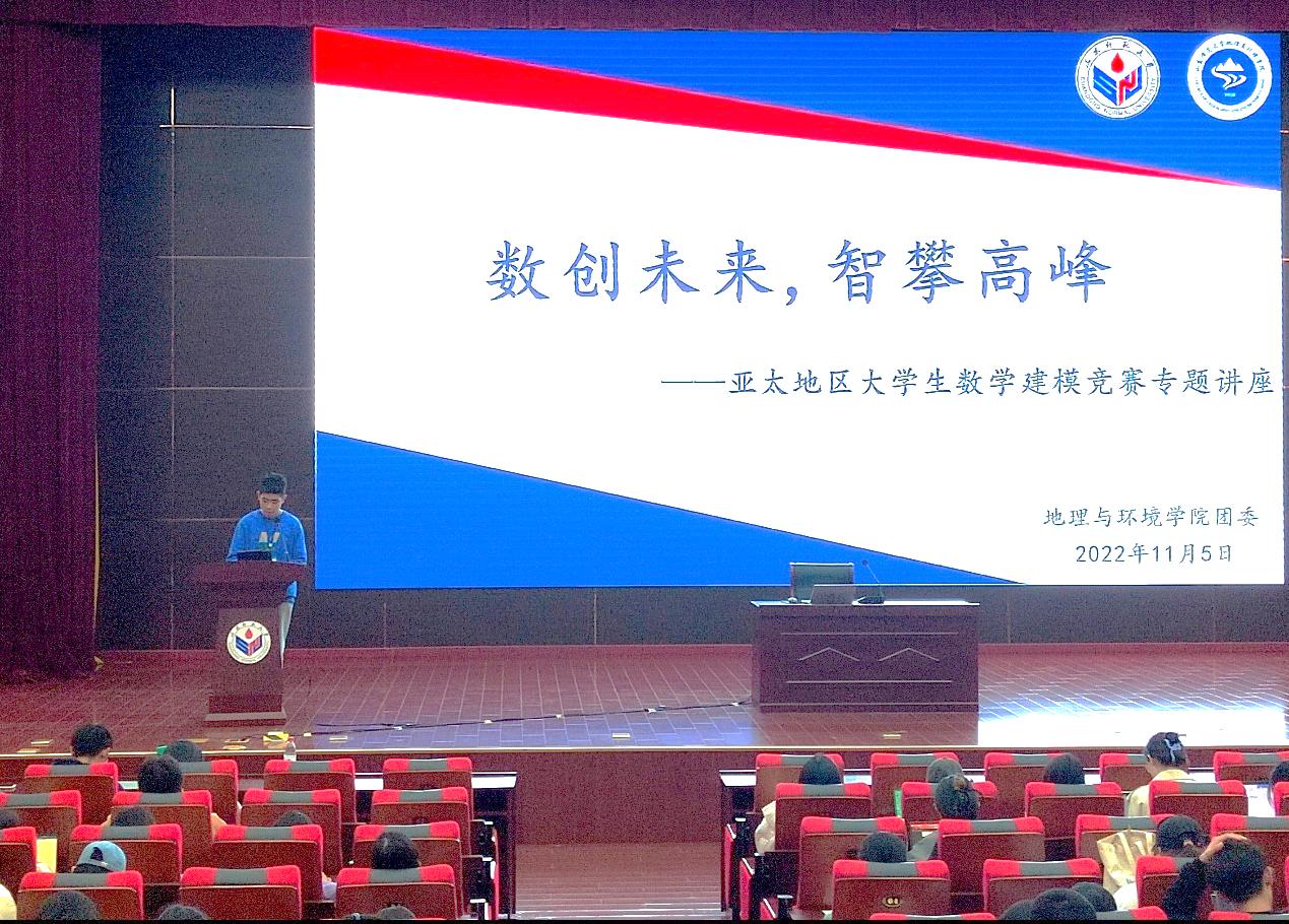为帮助同学们更深入的了解亚太地区大学生数学建模竞赛,培养同学们的创新能力,2022年11月5日,英国365集团团委、学生会青年发展部于长清湖校区树蕙堂第一报告厅举办了“数创未来,智攀高峰——亚太数模专题讲座”。亚太数模国家级一等奖获得者金珊、张定基、张思雨担任分享嘉宾。