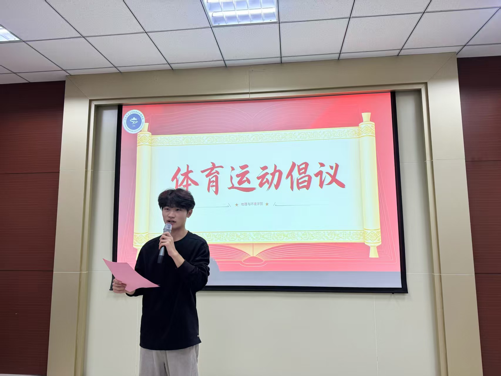 学生会主席团成员张立富同学作年度体育运动工作总结汇报,从体育赛事组织、体育队伍建设、校园体育氛围营造等方面全面梳理工作成效,向为体育事业发展付出辛勤努力的师生们致以诚挚感谢。学生会文体部部长陈友广同学发出体育运动倡议,号召全体同学走出宿舍、走向运动场,在体育运动中强健体魄、砥砺意志、凝聚青春力量。