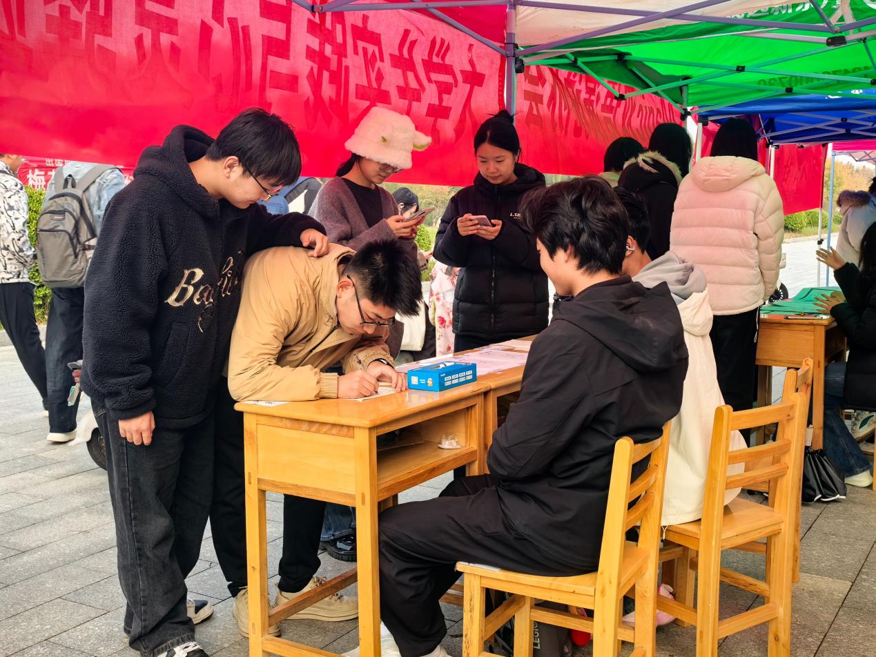 活动启动前,学院便提前布局宣传,于10月30日至31日线下开展社团路演宣传活动。路演现场设置社团活动体验、社团宣传等区域,环境保护社团、无人机社团等社团通过展板宣传、实地体验等形式,两天内吸引超千名师生驻足。线上宣传同样火热,参赛的环境保护社团、无人机社团、I-TAL社团及“银发筑梦育桃李”多个队伍纷纷在小红书平台发布案例故事,搭配#榜样100 #大学生知行计划 话题进行传播;学院官方微信公众号专门推出“银发筑梦育桃李”退休教师暑期访谈实践专题新闻稿,多篇稿件阅读量突破百次,有效提升了活动与学院社团的影响力。