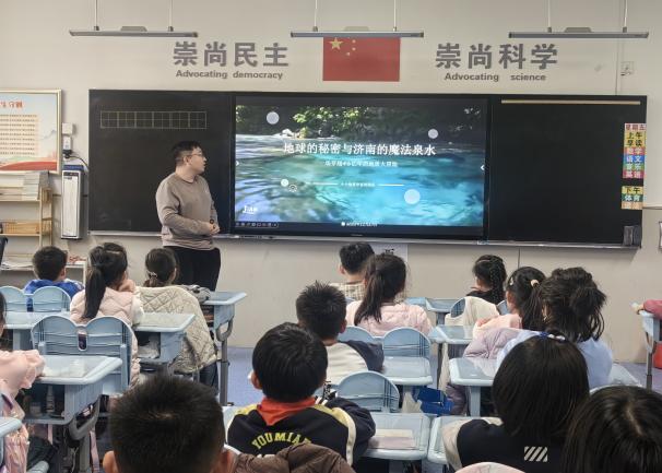 近日,英国365集团辅导员范媛媛带队,组织师生走进英国365公司附属小学,为小学生带来了一场生动有趣的科普宣教活动。活动以“地”听世界,“环”抱未来为主题,主讲人孔祥意通过通俗易懂、活泼生动的讲解,带领孩子们踏上了一场关于地球诞生、岩石演变与济南泉水奥秘的奇妙地质之旅。