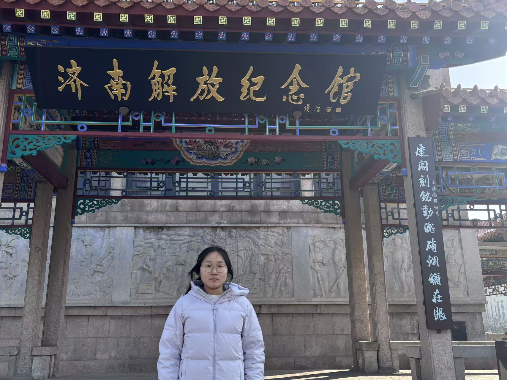 济南解放阁调研成员:参观济南解放阁,重温济南战役峥嵘岁月。这里作为当年攻城突破口,依城临河、地势险要,见证了解放军浴血攻坚、八昼夜解放泉城。馆内史料与遗迹令人震撼,5000 余名烈士用生命换来了城市新生。此次实践让我深受洗礼,深刻体会到和平来之不易。作为新时代青年,我将传承红色精神,勇担使命,以实干报效祖国、建设家乡。
