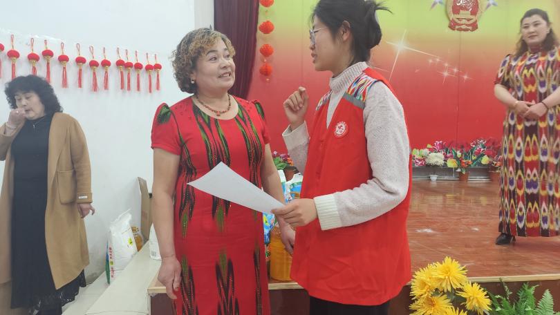 在新疆吐鲁番的鄯善县七克台镇,调研团队成员朱江林兼返乡深入七克台镇街巷村落,她与维吾尔族阿姨围坐炕头,虽然语言偶有隔阂,但真诚的笑容与质朴的交流让每一次对话都温暖人心。从葡萄架下到商铺门前,她用心倾听群众对天气变化的感知、对收成的期盼、对环境的诉求。