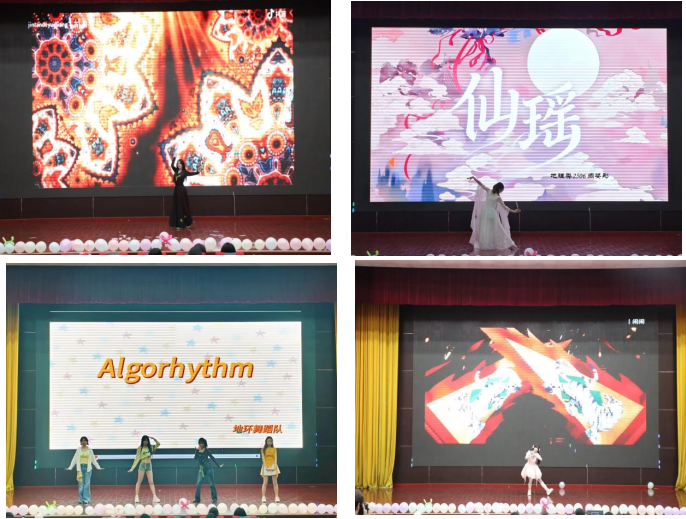 晚会节目类型多样,内容积极向上,现场气氛热烈。开场由学院舞蹈队带来《Algorhythm》,明快节奏迅速点燃全场。古典舞《仙瑶》《扬旗鸣鼓》以翩跹舞姿诠释东方美学,柔美典雅;现代韩舞《NXDE》自信飒爽;新疆民族舞《花语巴郎》《眉开眼笑》风情浓郁;童年歌曲串烧活泼俏皮,洋溢青春童趣。各类舞蹈精彩纷呈,充分展现了同学们朝气蓬勃、自信舒展的青春特质。