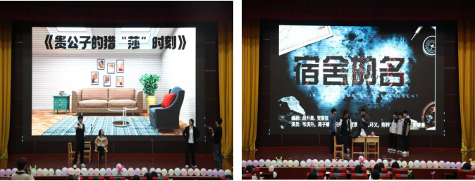 语言类节目趣味盎然,赢得阵阵掌声。小品《贵公子的猎莎时刻》《宿舍的名义》构思巧妙、诙谐幽默;《方言版配音》《我爱上学》等创意节目形式新颖,展现了同学们的奇思妙想与表达能力。地环模特队的走秀更是将晚会氛围推向轻松愉悦的高潮。