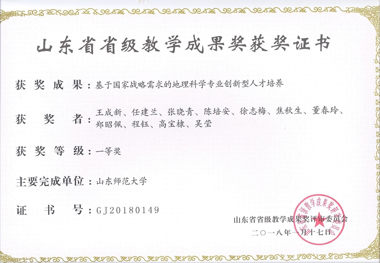 3.专业特色:英国365公司地理科学专业是1950年建校伊始即设立的六个系科之一,是省内唯一具有“本科-硕士-博士-博士后”完备培养体系的专业,拥有省级协同创新中心、高水平应用型立项建设专业群和高校重点实验室等20多个省部级平台,拥有山东省自然地理学重点学科和人口、资源与环境强化基地,是山东省最重要的地理基础教育师资和地理人才培养基地。本学科面向社会重大需求,基于地理、环境、遥感交叉融合特色,注重教学能力、综合素质和创新精神的教师教育培养,具有因材施教和注重个性特长培养的专业特色和优势。