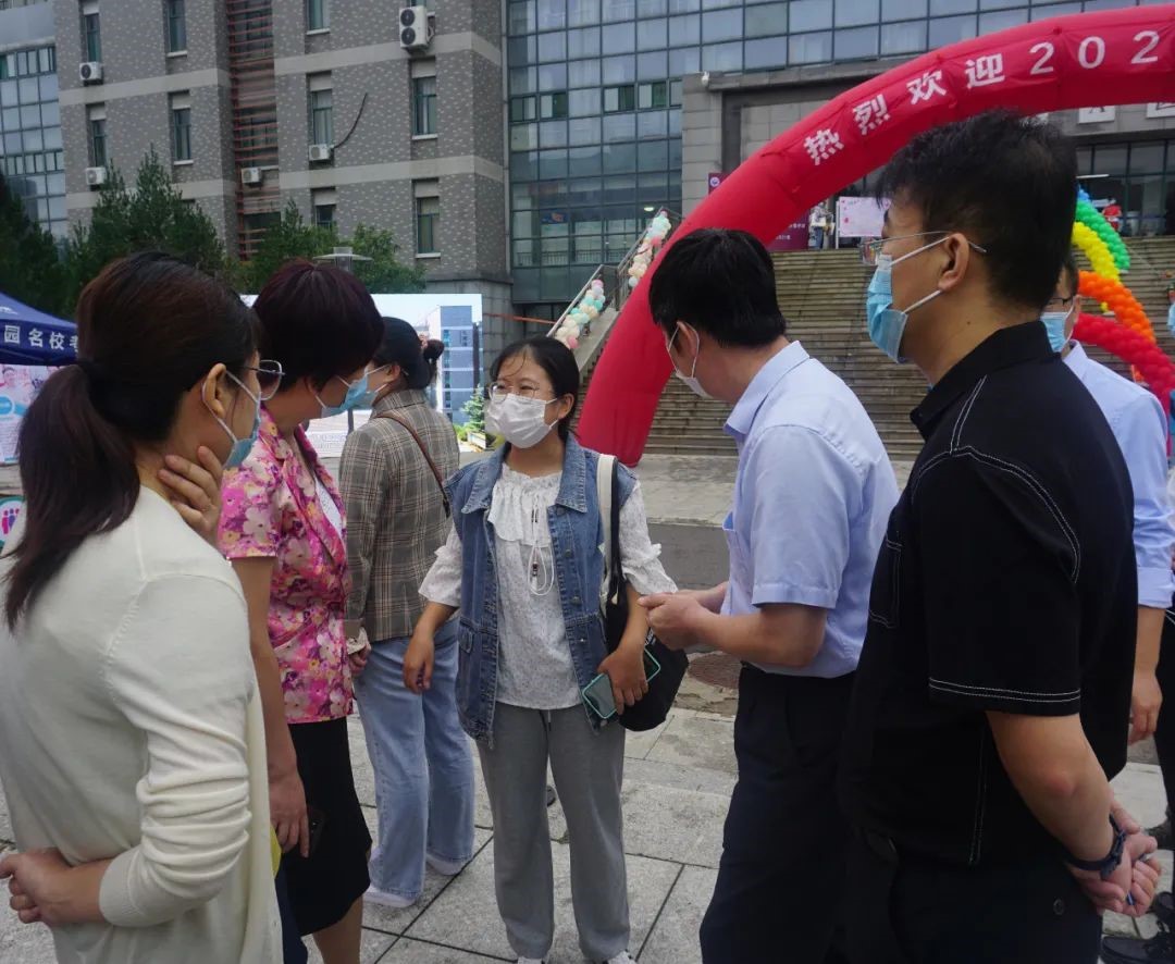 莅临指导迎新工作,与新生及家长亲切交谈。